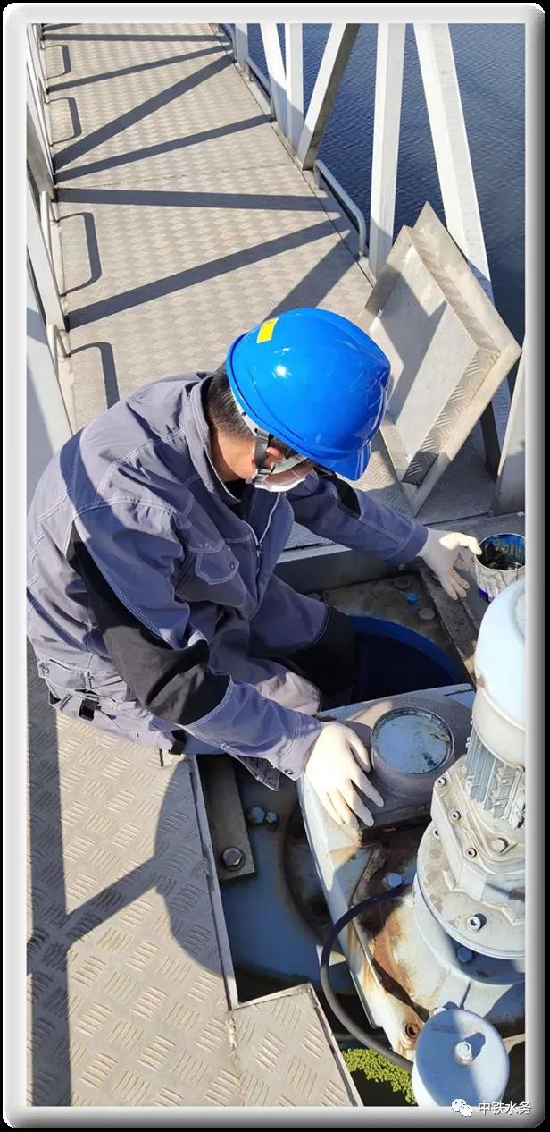 广德中铁水务机修车间机修员修理二沉池刮泥机,确保设备正常运转,为出水达标排放保驾护航
