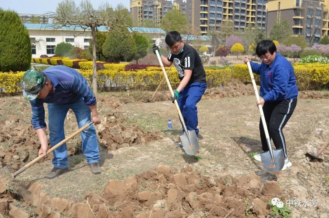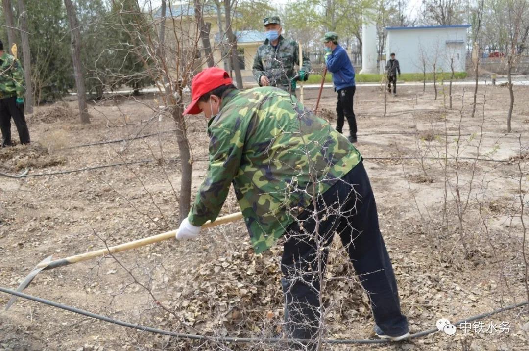 党旗飘飘迎“五一” ,贺兰山中铁水务开展义务劳动展风采活动。集中对厂区树木和垃圾进行清理。党员带动群众,以行动诠释责任,以奉献践行初心使命。