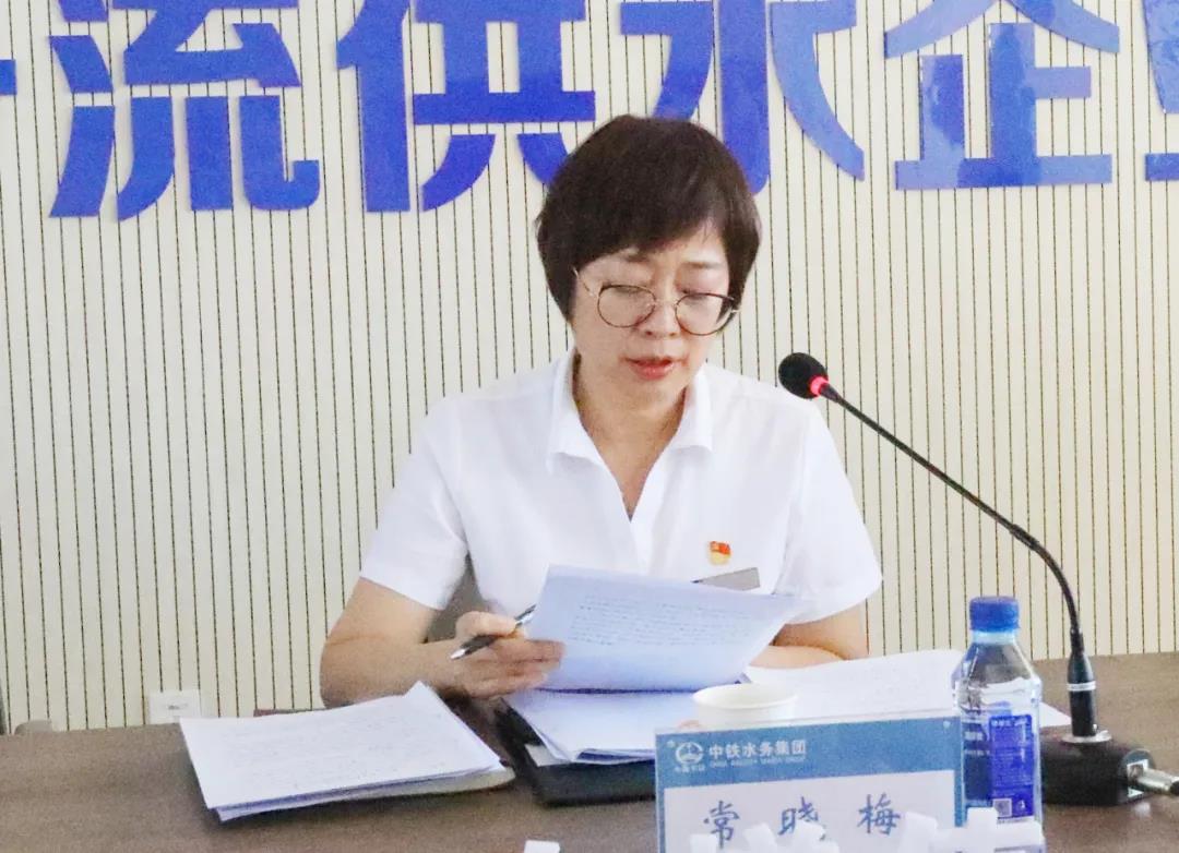 副总经理常晓梅就“供水服务质量提升年”实施方案进行宣读。常晓梅指出,开展此项活动就是为了进一步优化营商环境,持续提升银川中铁水务核心竞争力,持续提升供水服务质量,不断提高对外服务水平。要通过此次活动从推进“新源业合”服务、打造“三位一体”营商环境品牌、建设“十分钟”工作圈、闪亮“银川中铁水务”标志、实施推“零”行动、加快智慧水务建设等十个方面着手,构建提升供水服务质量全流程体系,为全面提升供水服务保驾护航。