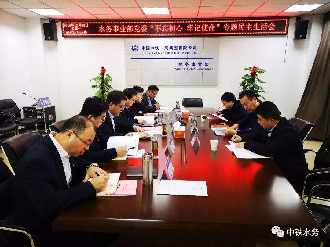 12月9日,中铁一局水务事业部党委在西安机关本部召开“不忘初心、牢记使命”专题民主生活会。中铁一局党委第三巡回指导组组长刘绥安,指导员赵利强、赵晓蕾到会指导。水务事业部全体班子成员参会。会议由事业部党委书记李斌主持。
