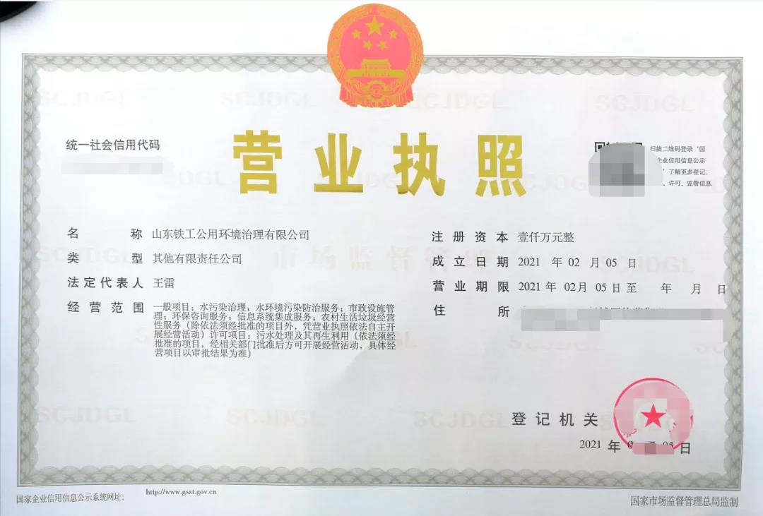 2月5日,经过不懈努力,中铁水务集团公司旗下,山东铁工公用环境治理有限公司在山东济宁正式注册成立,这标志着中铁水务正式进军农村污水治理领域。