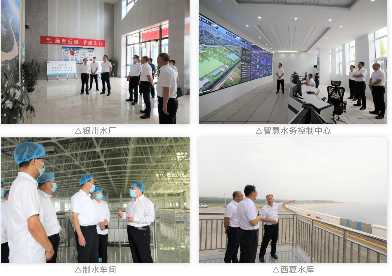 △银川水厂△制水车间△智慧水务控制中心△西夏水库何景明一行实地考察了中铁水务集团“投建营”一体化的西线供水项目西夏水库,银川水厂制水车间、中控室,智慧水务控制中心,客户服务部96666热线,水质检测中心等地;详细了解了西线供水项目建设、运营情况。通过实地查看和现场交流,何景明对中铁水务集团西线供水项目建设运营及供水工作给予充分肯定。