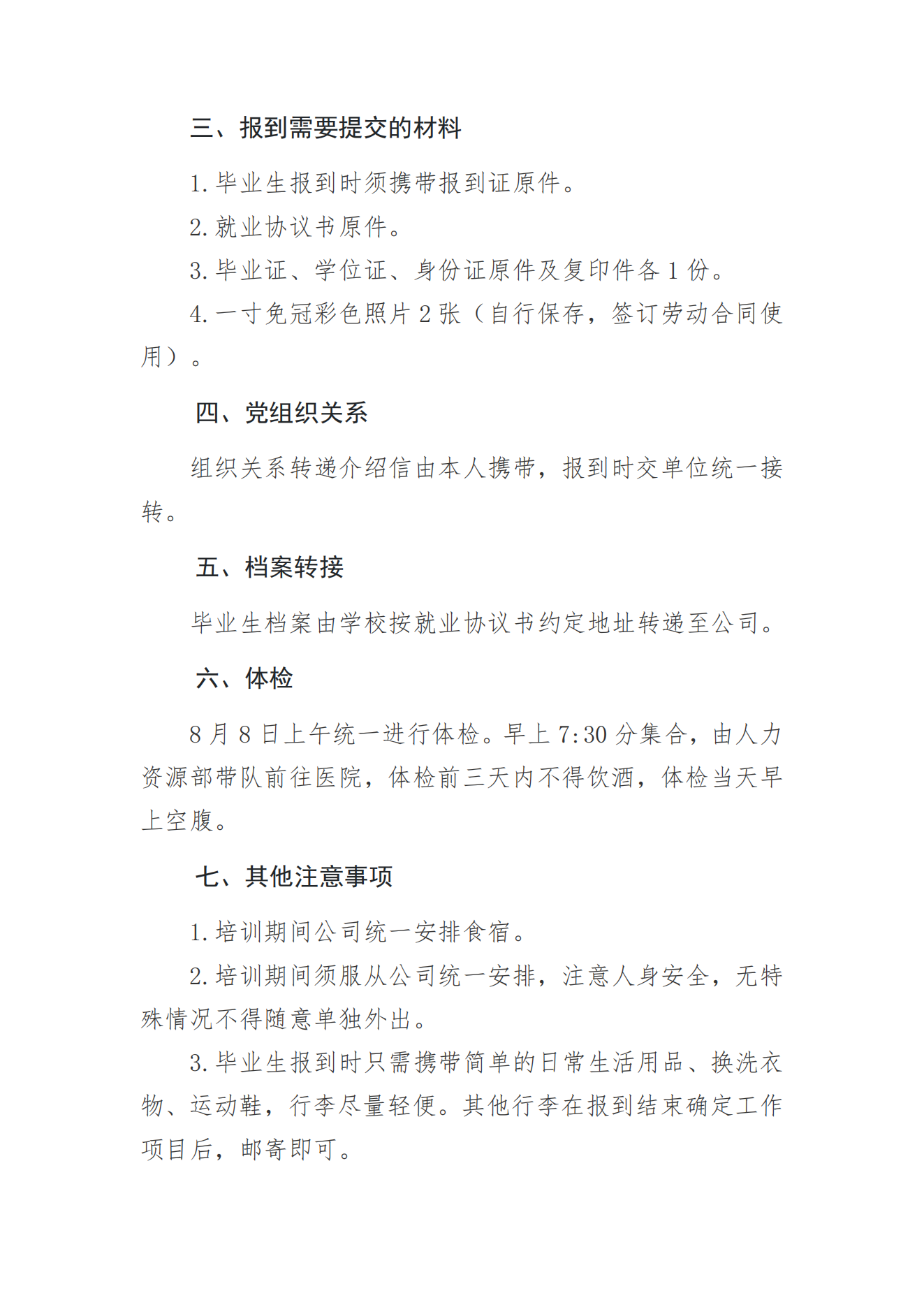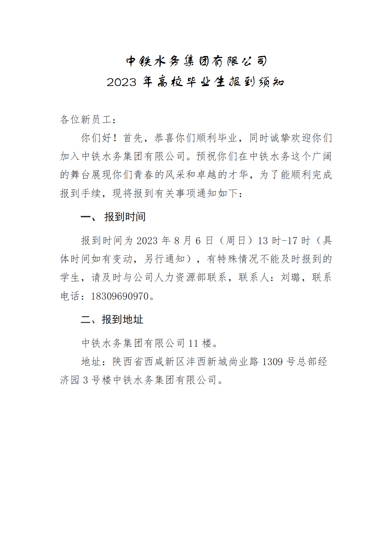 中铁水务集团有限公司2023年高校毕业生报到须知