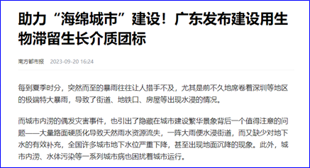 9月20日,广东省标准化协会团体系列标准发布公告,由中国铁工投资旗下中铁水务参与制定的《海绵城市建设用生物滞留生长介质要求》和《海绵城市建设用生物滞留生长介质评价》两项团体标准正式发布,引发多家主流媒体的关注。