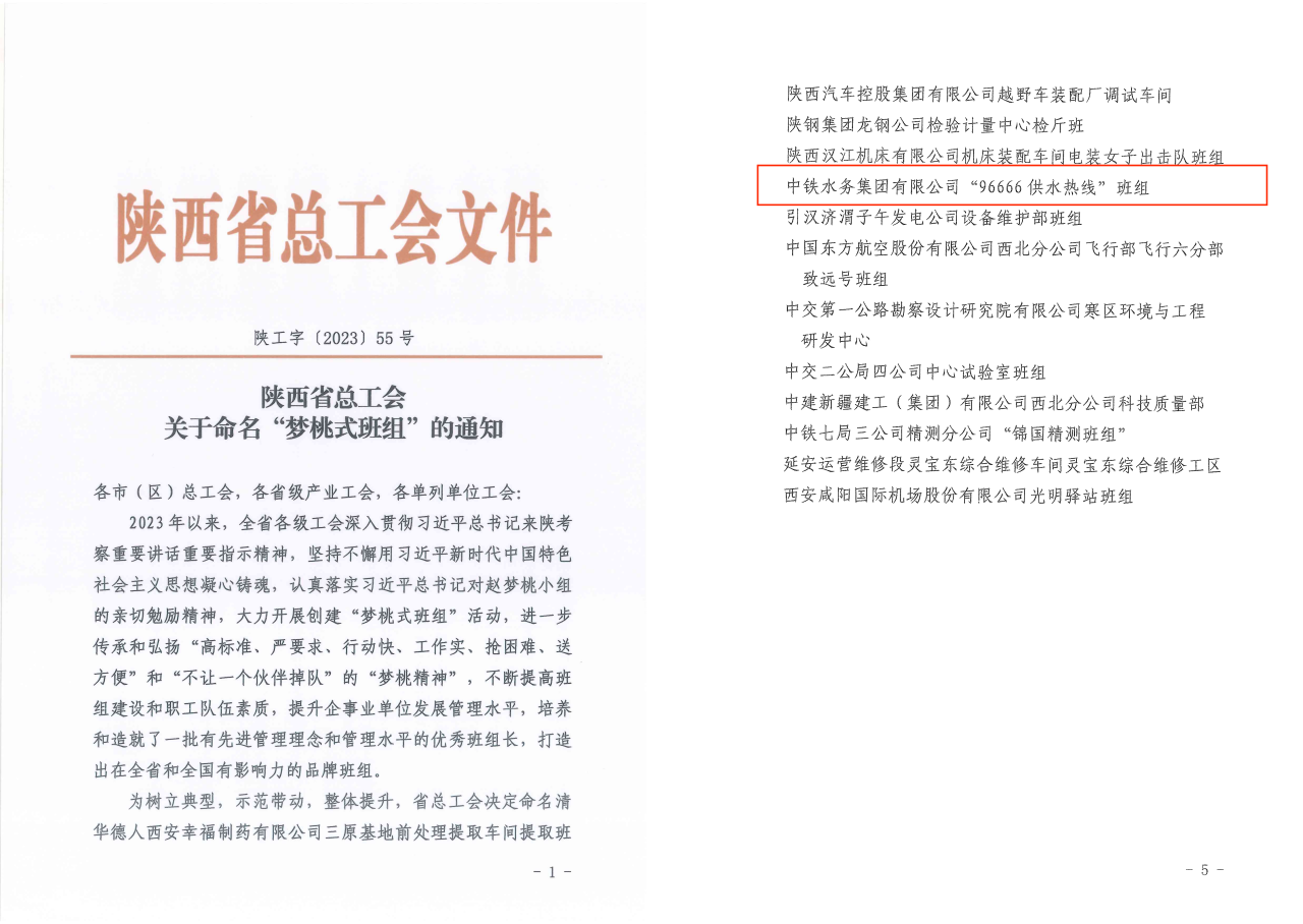 近日,中铁水务银川中铁水务“96666供水热线”班组荣获陕西省总工会授予的2023年“梦桃式班组”荣誉称号。这一殊荣来之不易,这不仅是梦桃精神的具体体现,更是对铁工人“致力美丽中国建设 服务人民美好生活”初心的生动诠释。