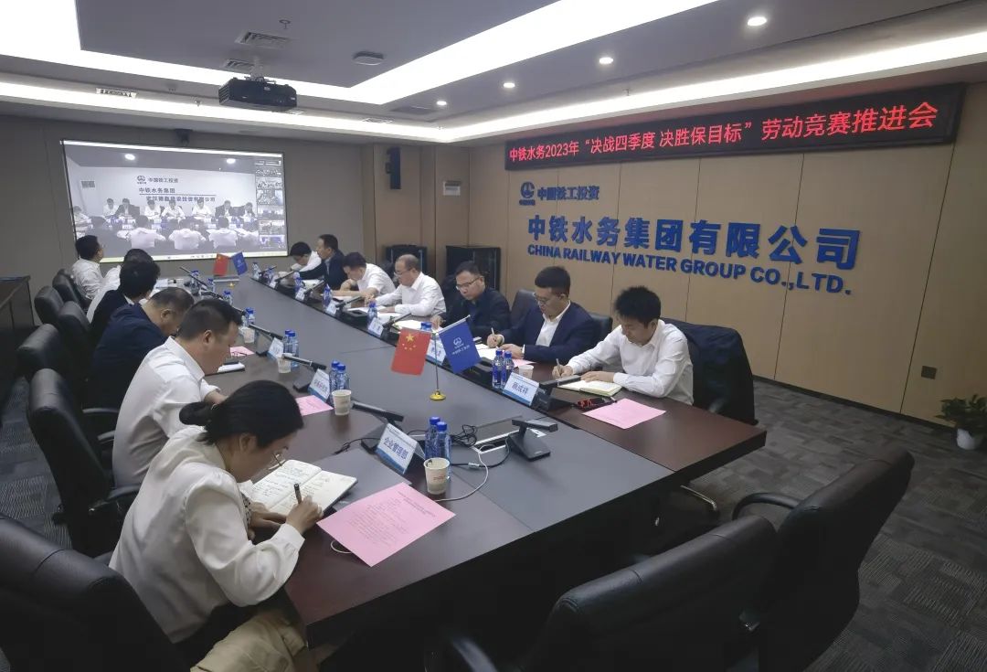 10月22日,集团公司在武汉召开2023年大商务管理和项目管理效益提升推进会暨警示教育大会后,中铁水务立即组织召开2023年“攻坚四季度、决胜保目标”劳动竞赛推进会,本次会议旨在扎实推进第二批主题教育,深入贯彻落实集团公司大商务管理和项目管理效益提升现场推进会暨警示教育大会精神,调动全公司干部员工冲刺四季度,打好收官战。公司党委书记、执行董事王文刚,党委副书记、总经理吴琦出席会议并讲话,会议由副总经理、工会主席兼银川中铁水务党委书记、董事长朱英超主持。
