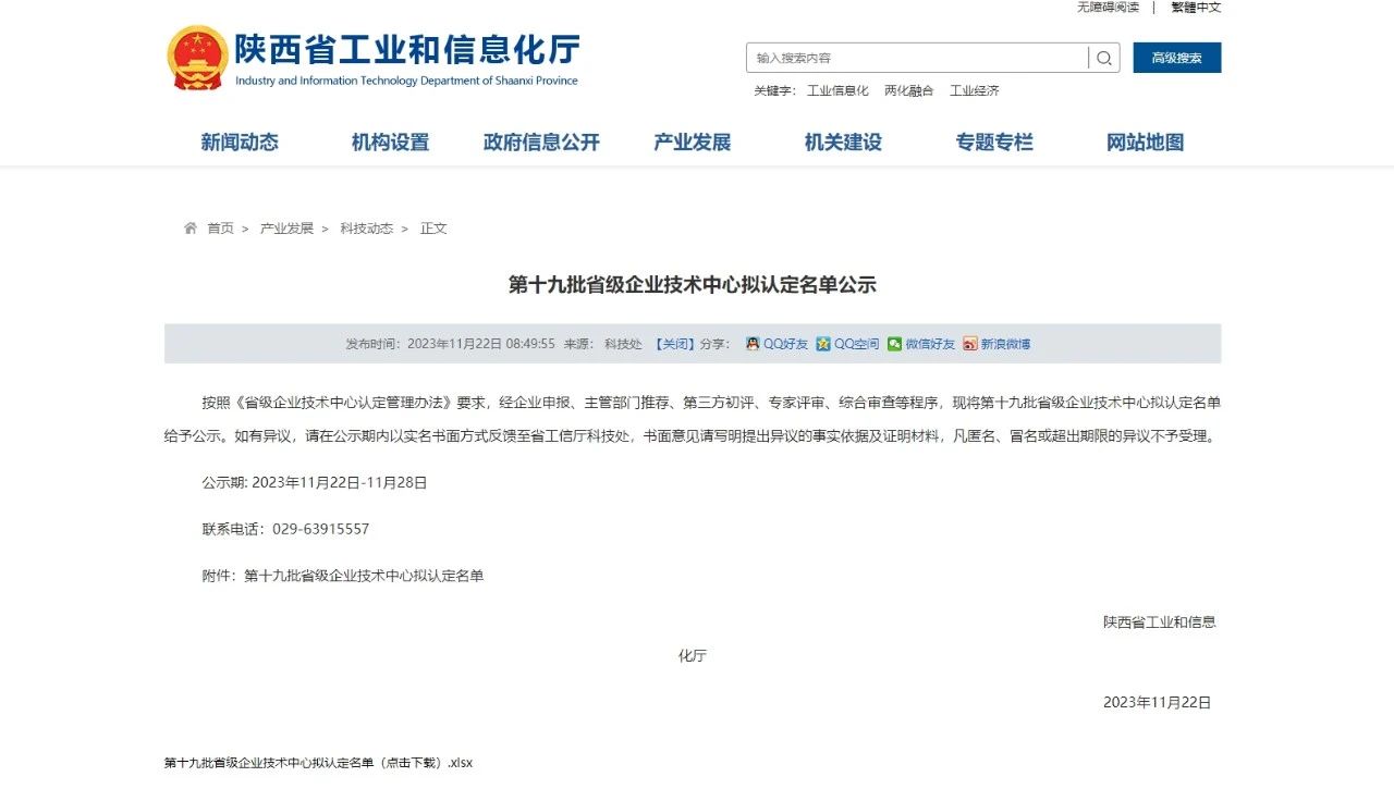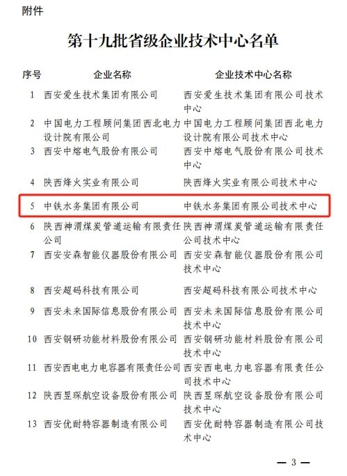 近日,陕西省工业和信息化厅、陕西省科学技术厅、陕西省财政厅等五部门联合发文了《关于公布第十九批省级企业技术中心名单的通知》,公布了陕西省第十九批省级企业技术中心认定名单,经过严格的评审和考核,中铁水务集团有限公司荣获陕西省企业技术中心认定,这是公司继获得“陕西省知识产权优势企业”荣誉后又一重磅荣誉,再次印证了公司在技术创新和研发方面的实力。