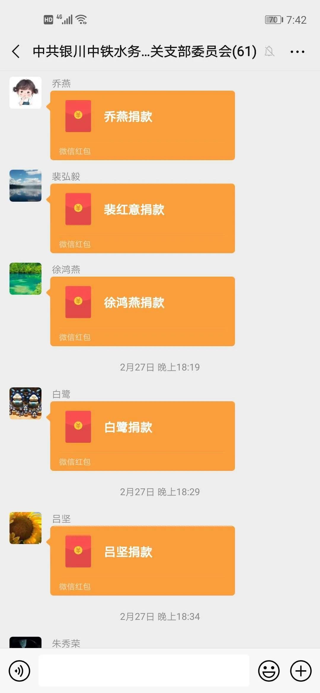 公司各支部党员积极为疫情防控一线进行捐款,增强战“疫”必胜的信心。截至3月1日上午,捐款累计达27646元。银川中铁水务集团广大党员用实际行动助力疫情防控工作,诠释出困难面前的大爱与责任。他们充分诠释了共产党员的先锋模范作用,为党旗增辉,为抗“疫”助力!