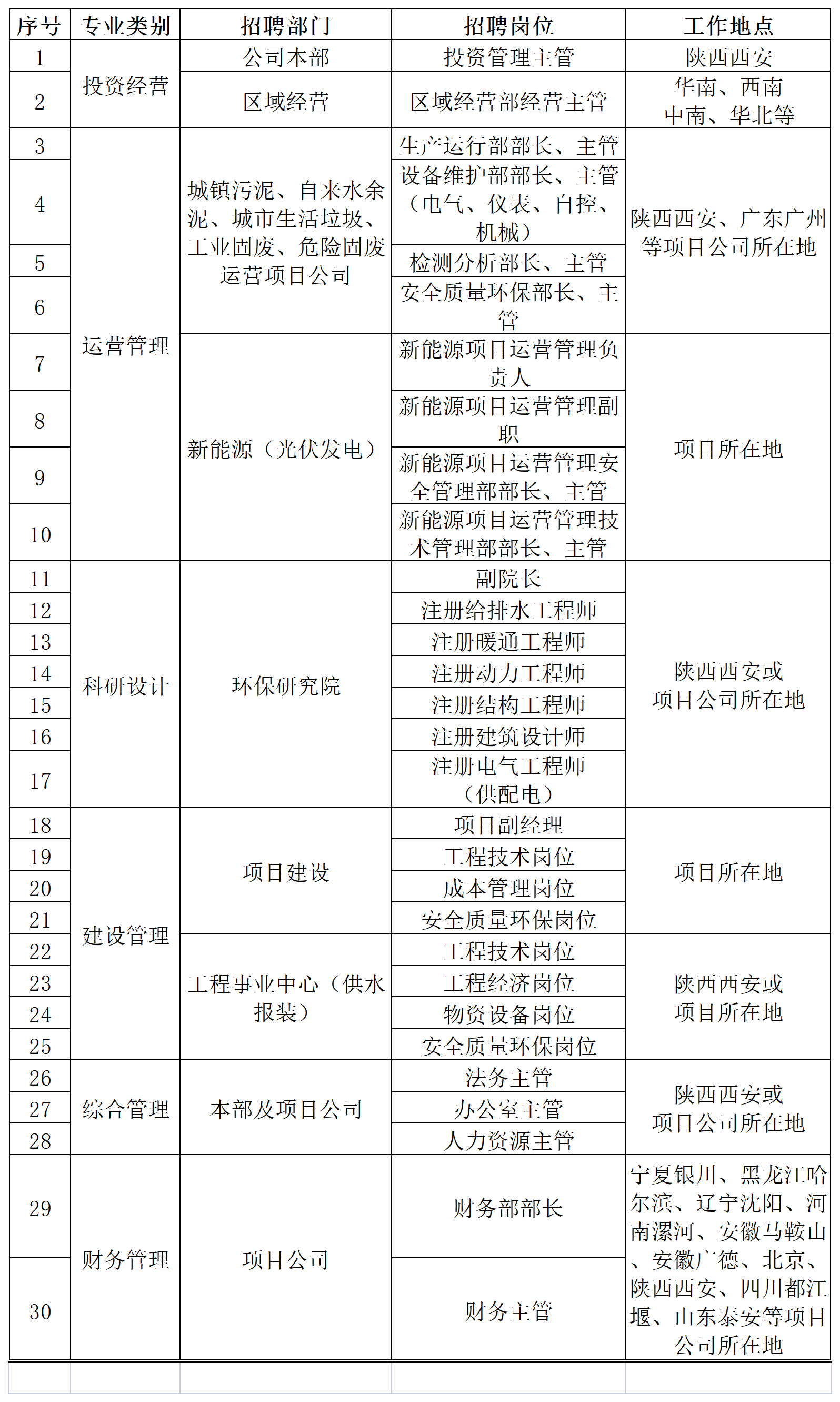 具有3年及以上相关工作经验;科研设计岗位应具有4年及以上相关工作经验;新能源运营管理负责人及副职、建设项目副职、环保研究院副院长应具有5年及以上相关工作经验。
